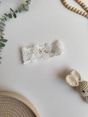 Elevate your baby girl's style with our Lace Bow Headband. Made with delicate lace and a charming bow, this headband adds the perfect touch of elegance to any outfit. Plus, its soft and comfortable design ensures all-day wear without any irritation. Perfect for special occasions or everyday wear.