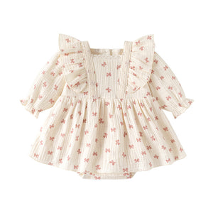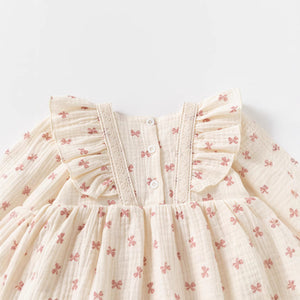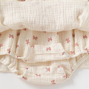 Baby Girl Cotton Muslin Bow Print Romper