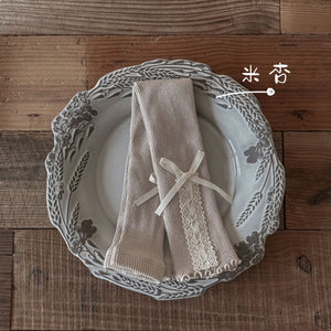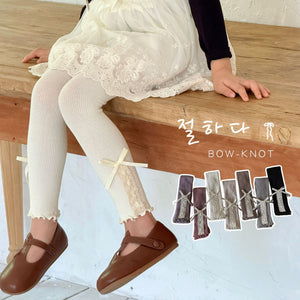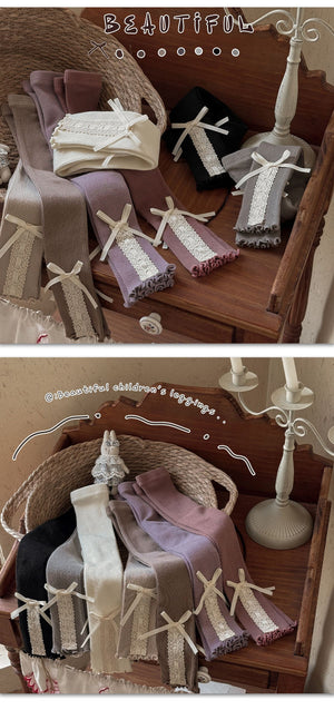 Our Lace Ribbon Baby Leggings are designed with a delicate boutique touch. Crafted from soft ribbed knit fabric, these leggings feature a beautiful lace panel detail with ribbon threading and a tiny bow accent, finished with subtle frill hems.